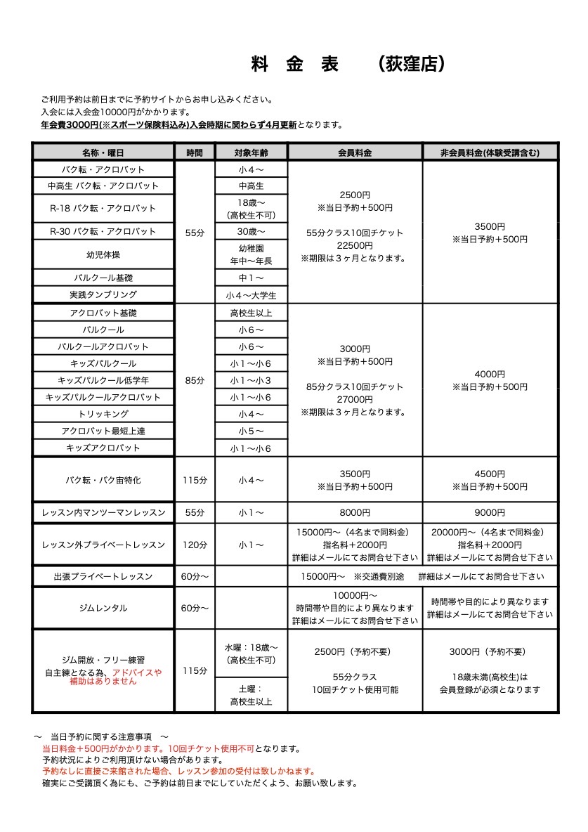バク転などのアクロバット系クラスやパルクール&トリッキングクラスだけでなく、錦糸町店にはないブレイクダンスのパワームーブ専門クラスもご用意。ダンサーの方にも人気です。