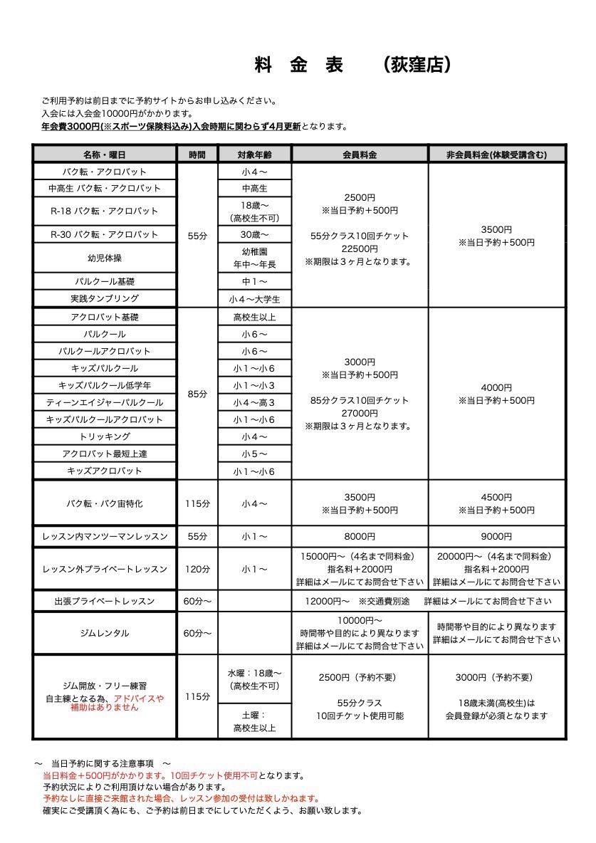 2020年にオープン! 安全性の高いエアマット、ダンスやアクションの練習に最適なクッションフロア、大型ミラーなど多彩な設備を備え、幅広いニーズに応えます。エアマットは厚さ30cm&20cmの2種類を完備。国内のアクロバット教室ではほとんどお目に掛かれない、AIRTRACK FATCORY社の最新マットを使用しています。30cmはトランポリンに近い跳ね方、20cmの方はタンブリングバーンに近い跳ね方となっていますので、技に合わせて使い分けが可能です。また、どちらも安全性の高いマットですから、アクロバット初心者でも安心して練習できます。